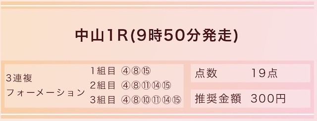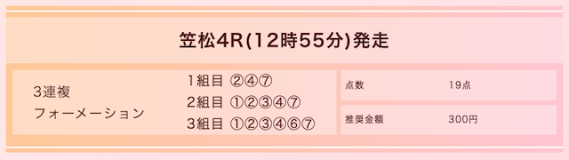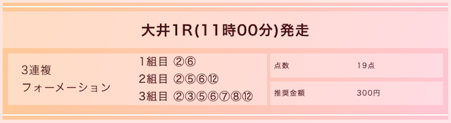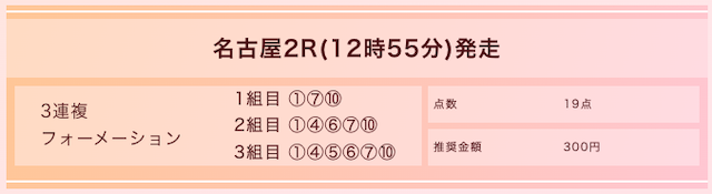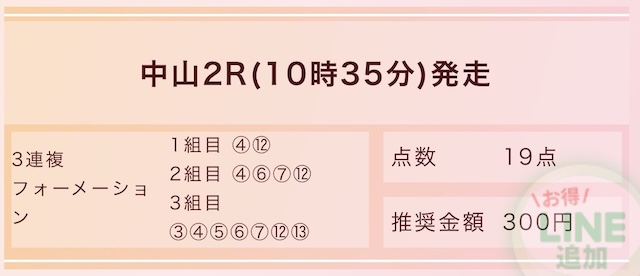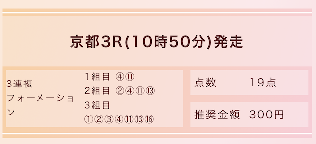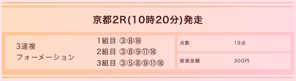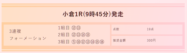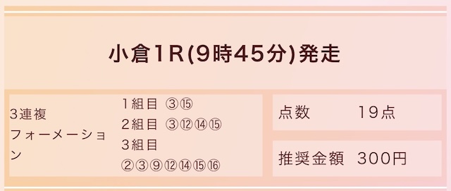 買い方は3連複フォーメーションで、計19点の予想が公開されるようです。