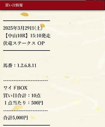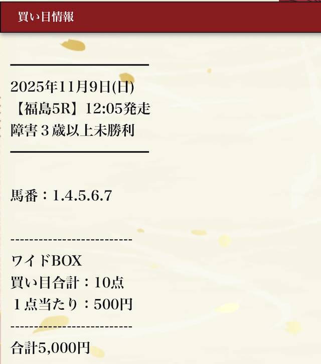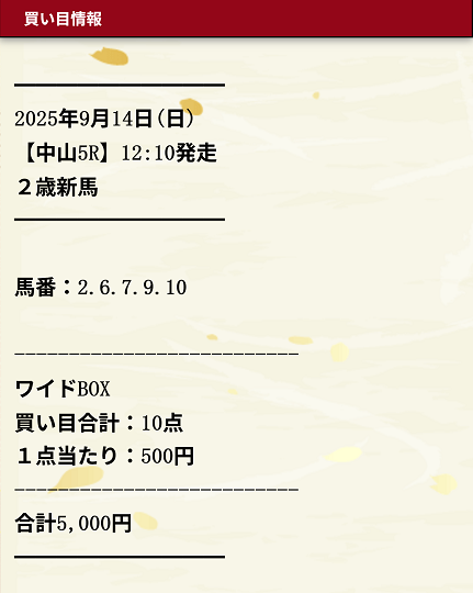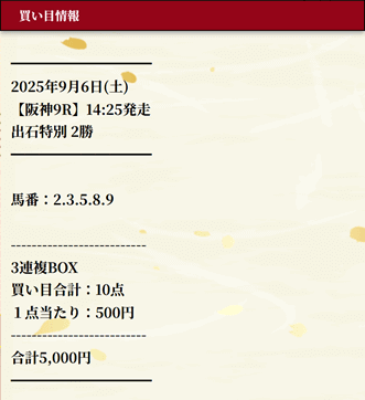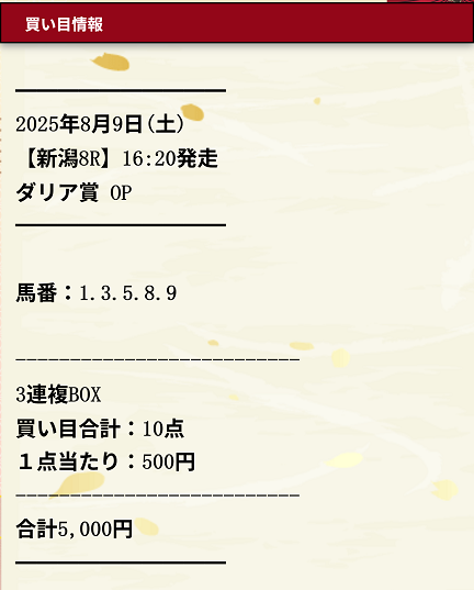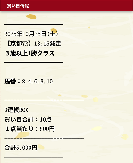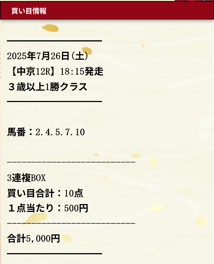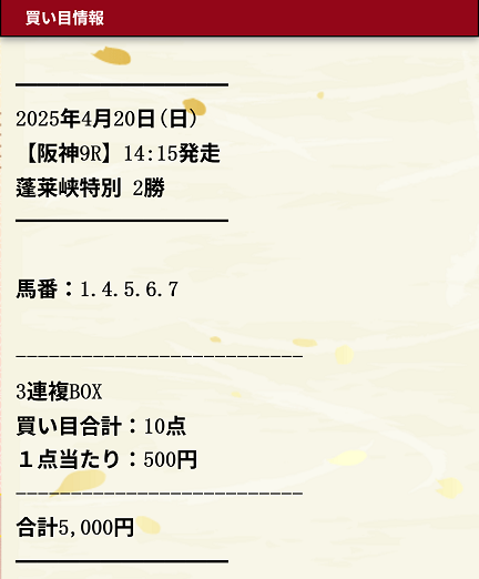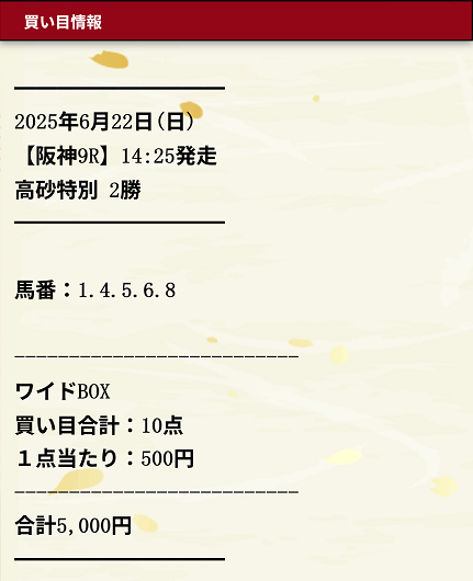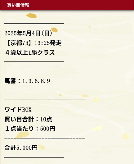 ワイドと3連複を公開していたんですけど、私は3連複で参加しました。