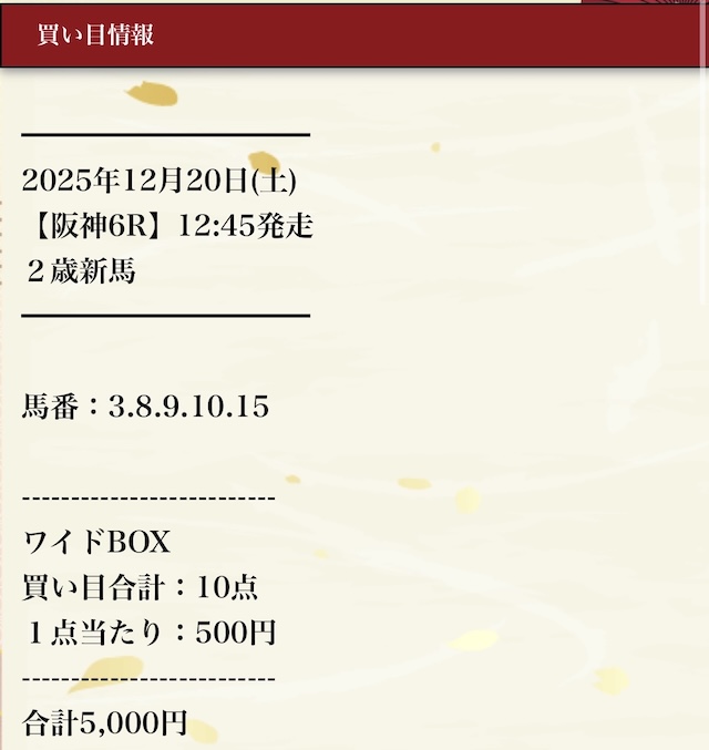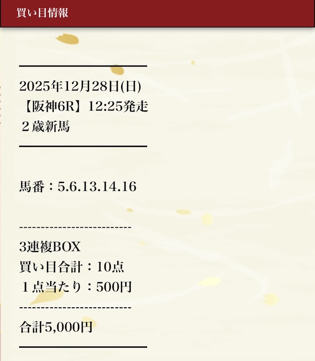 買い目を見た時はなぜ選んだのか疑問でした。