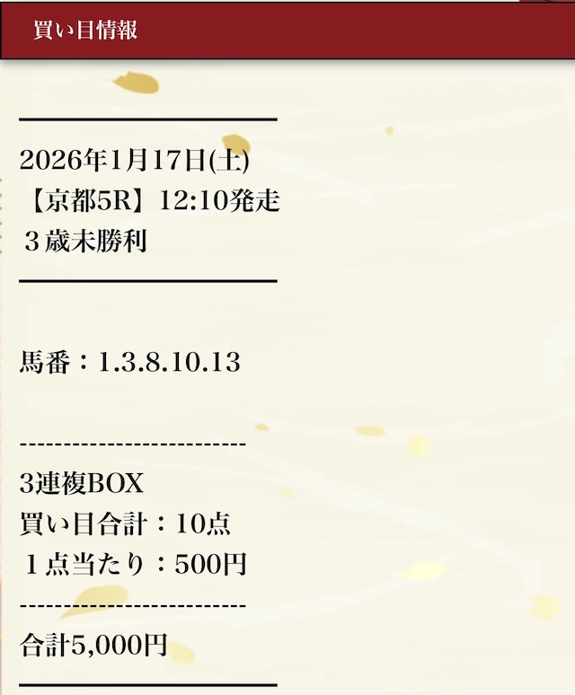 全部ボックスの予想だから負ける気がしないな。