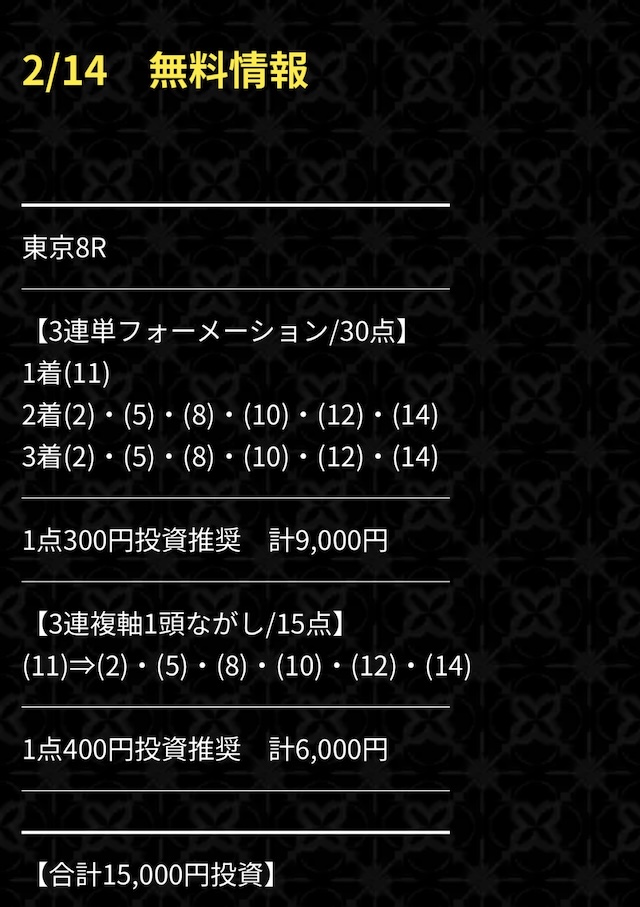 無料予想で満足できなかったので僕は有料予想に参加しました。
