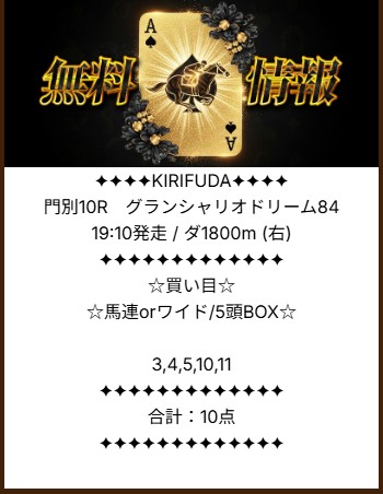 | 推奨馬券代 | 記載なし(10点) |
