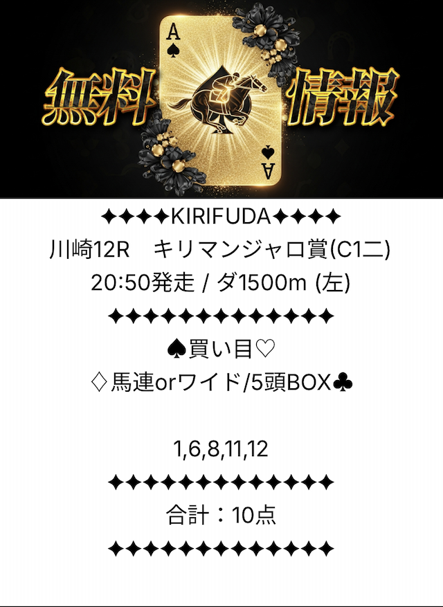 実際にキリフダの無料予想に丸乗りして、検証していきたいと思います!
