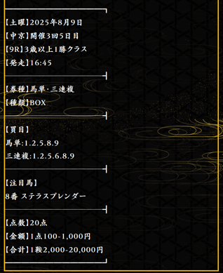 堅い決着も荒れた展開も想定した買い目になっています。