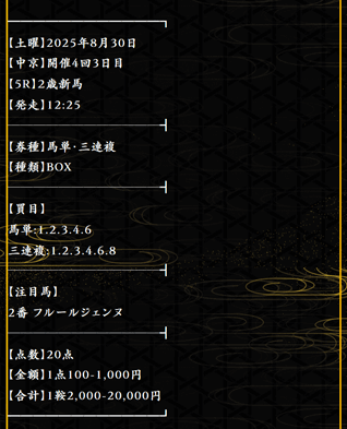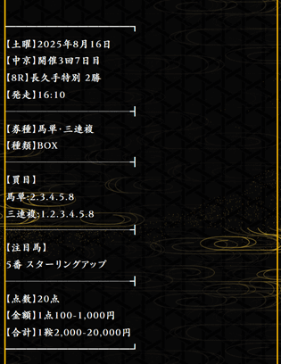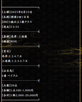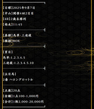 実際に公開された買い目がこちらです。