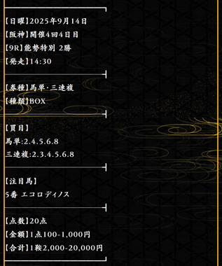 騏驎も例外ではないので、稼げる予想を公開してくれる事を祈ります。