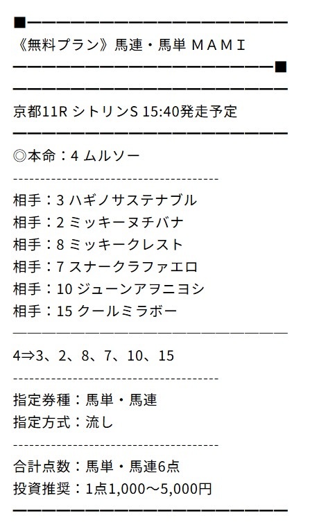 中央競馬で行われる全てのレース予想を公開しているわけではありません。