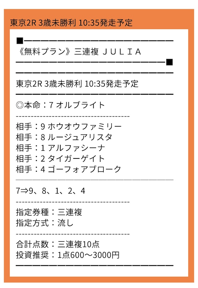 新馬戦の不確定要素を踏まえた上での3点的中でした!信頼度アップしましたね