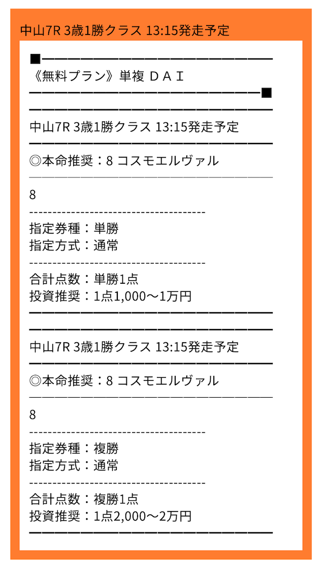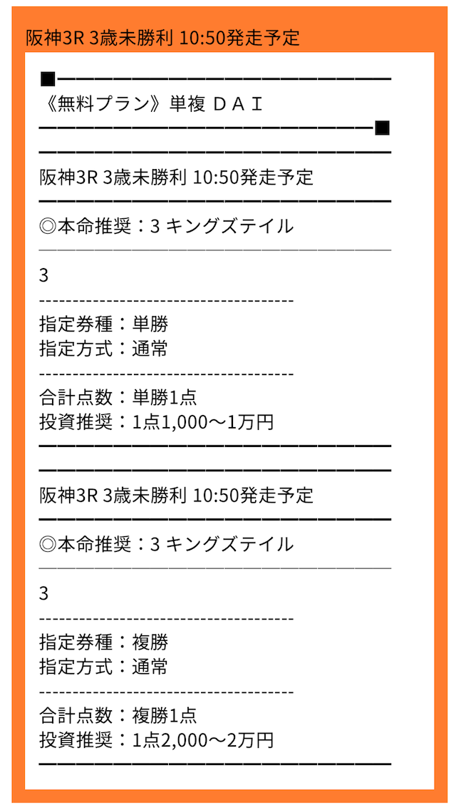 さらに券種もレースごとに変えているため、公開されるレース・券種・買い目の点数を指定されるので事前に把握しておきましょう。