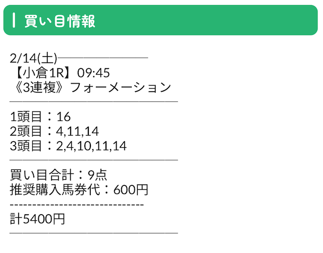 | 予想の精度 | ◎ | 的中率は高く精度は高い状態をキープしている。 |
