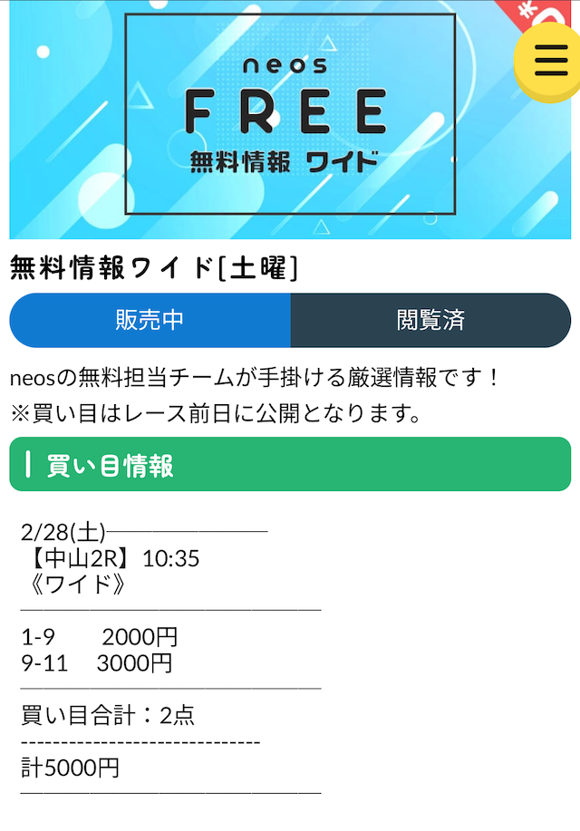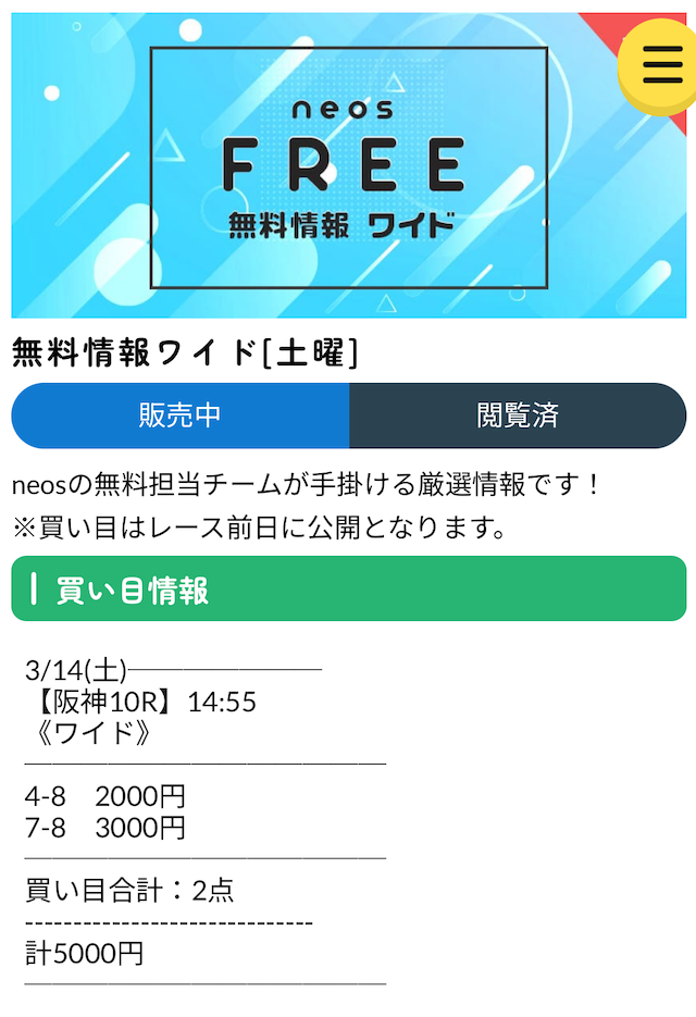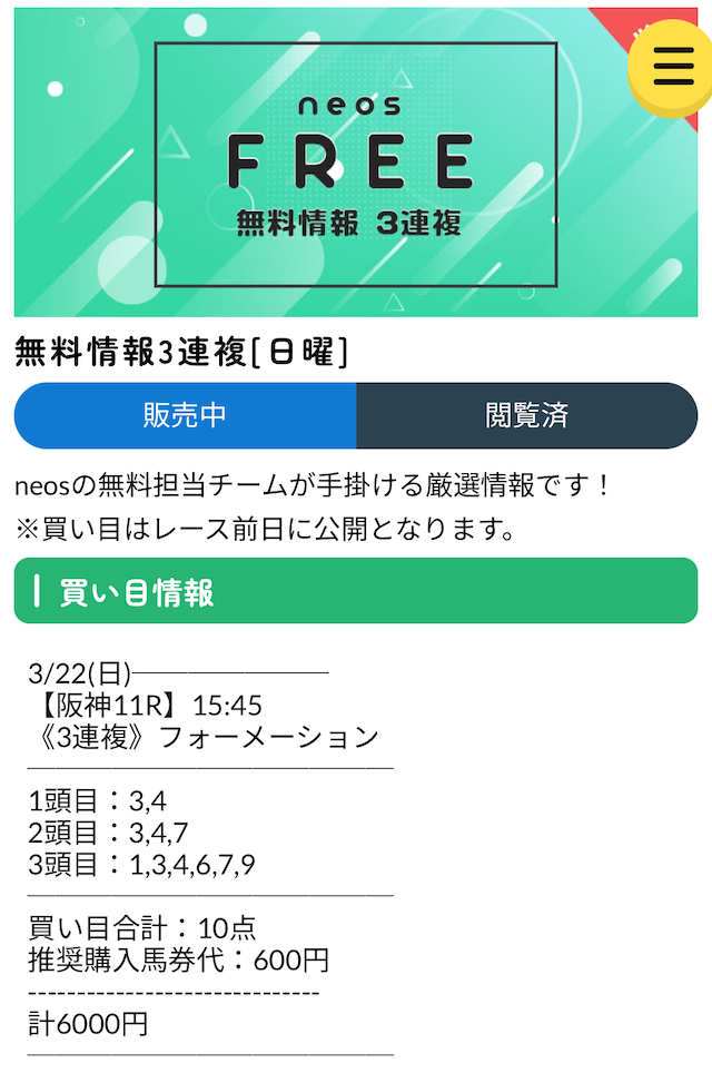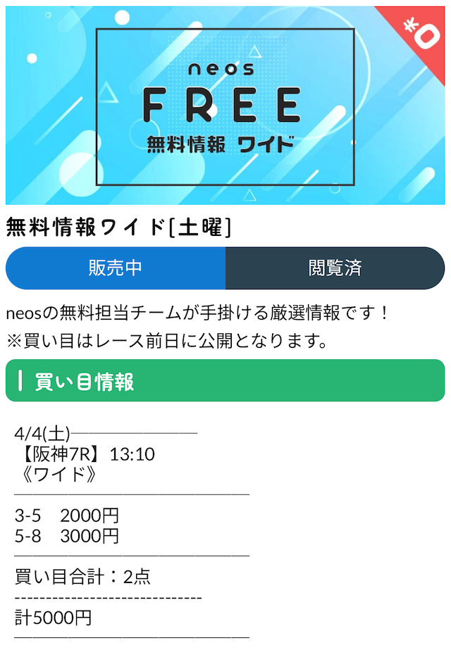 neosの無料予想はワイド・3連複を上手く使いこなしている印象。長期的に参加することでかなり稼げる気がする。来週から1点あたりの投資金額を増やして参加します!