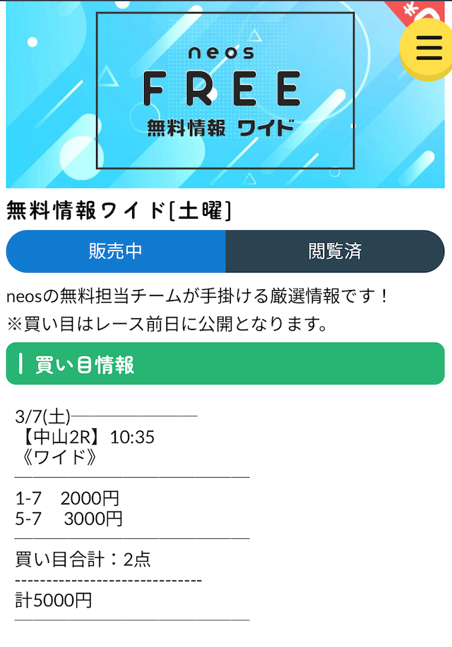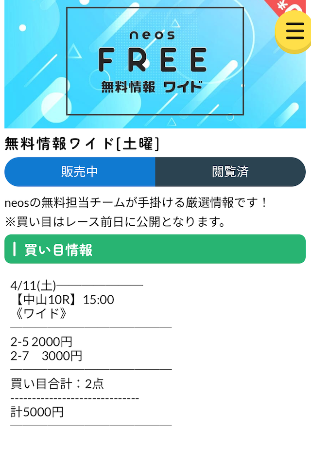 専属サポートから保証制度までしっかりと整っている!ユーザーを大切にしているのが伝わります。また、新規会員限定の「ネオスダービーチャレンジ」は絶対にやっておくべき!私は3等が当たりました。有料予想に割引価格で参加決定!