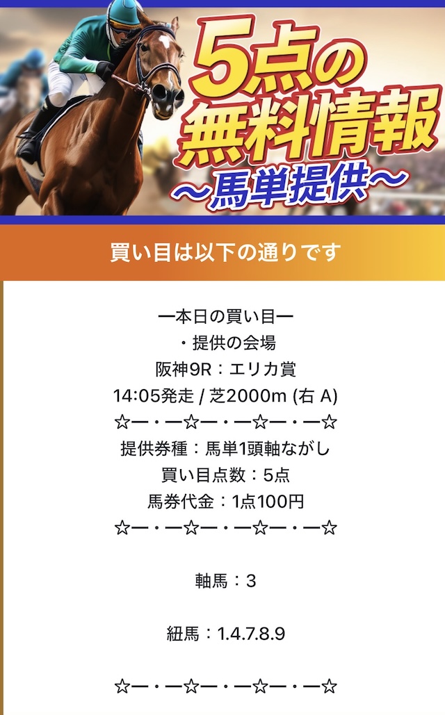 | 無料予想 | 条件次第では連敗の可能性あり |