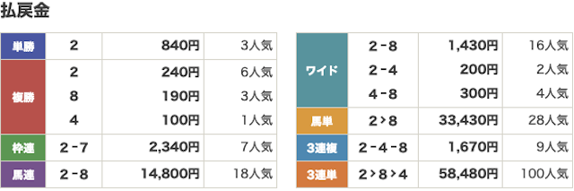 各1,000円で賭けていたので、払戻は61,800円でした!