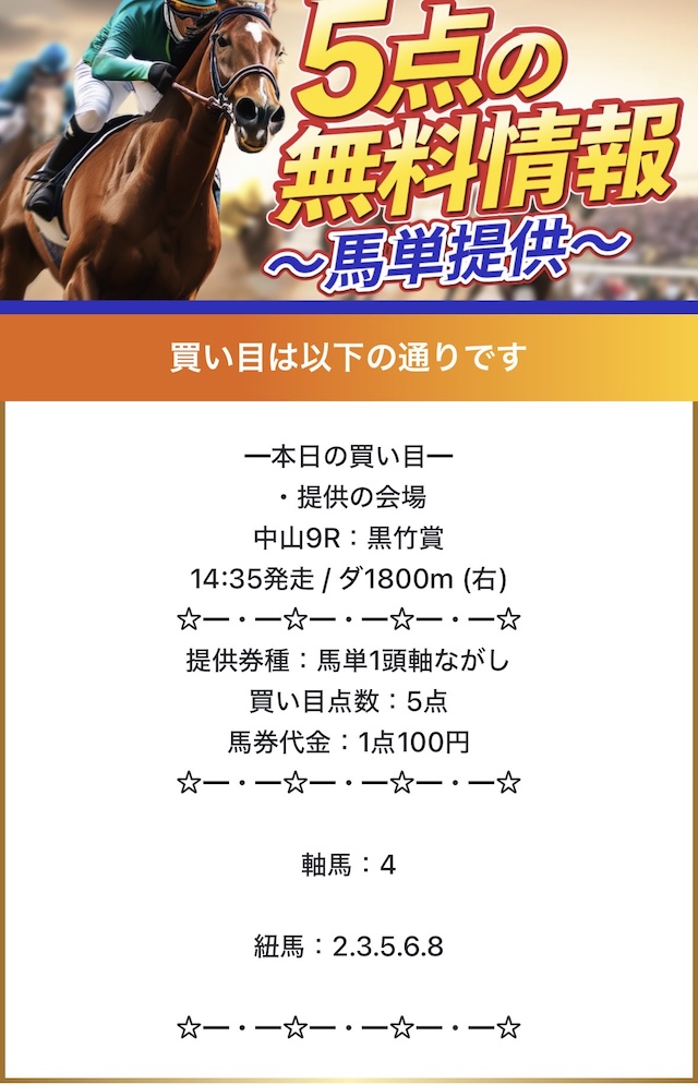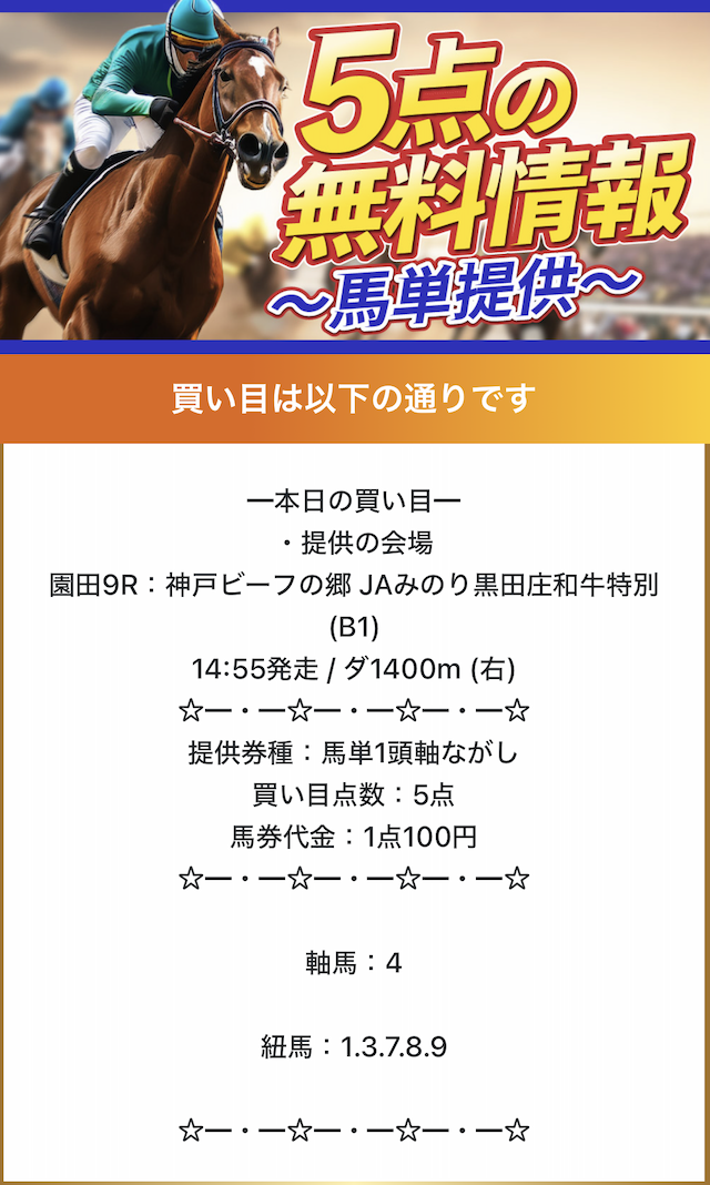 私が参加した時も4鞍提供で複数的中して利益になりました。