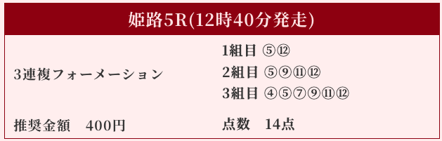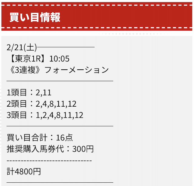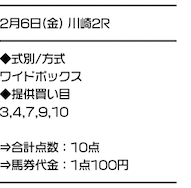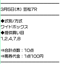 | 血統の暗号 | 64,800円 | 土日4鞍/3連単 (1鞍5,000円以内) |