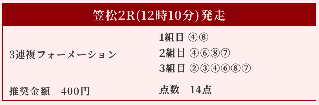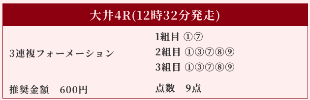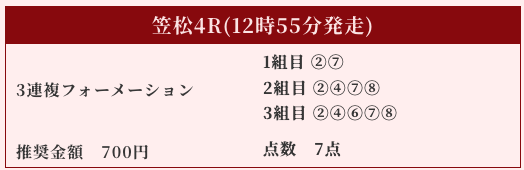 | 荒波突破フォーメーション | 80,000円 | 土日4鞍/3連単 (1鞍5,000円以内) |