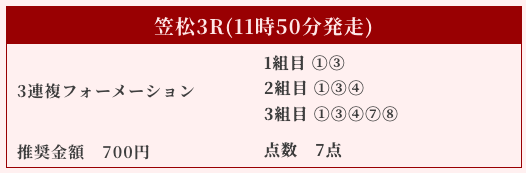 | 黄金の展開図 | 150,000円 | 土日4鞍/3連単 (1鞍5,000円以内) |