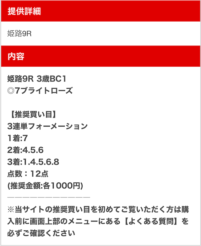 無料情報は平日も土日も毎日3鞍あるので、情報が豊富で助かっています。しかも的中率も高いので、無料とは思えない内容です。有料プランへ切り替えるきっかけになりました。