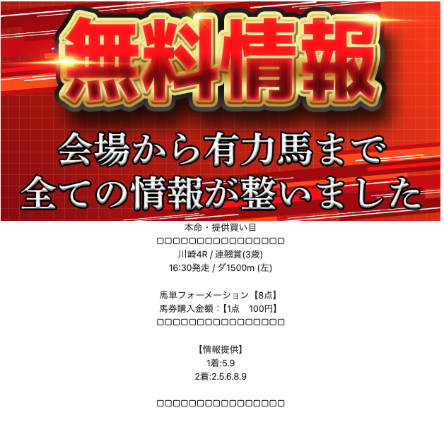 これが事実ならば、そこらの予想サイトとは比べ物にならない程の結果を残すはず。