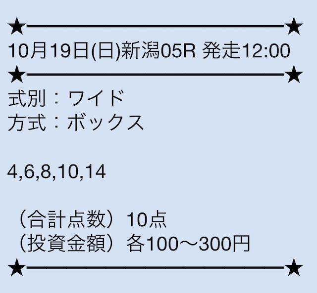| プラン名 | 情報料金 | 公開数/券種 (馬券代) |