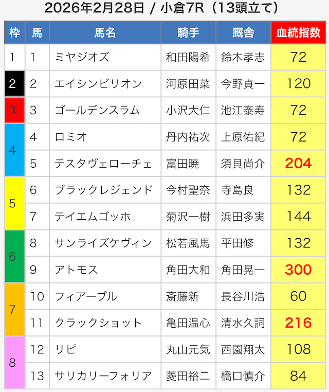 本レースは9頭立てですが、1頭除外馬がいて8頭立てとなった1戦。