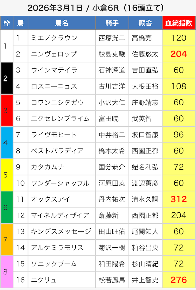 直近では凡走が続いていますが、900mは初出走のため、距離短縮による一変に期待といったところでしょうか。