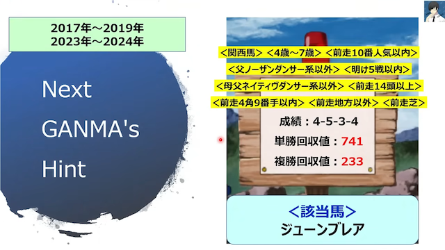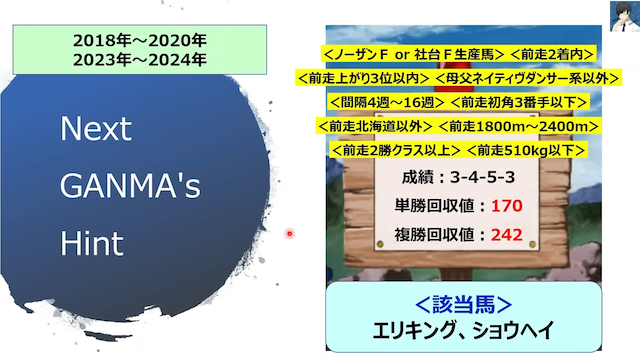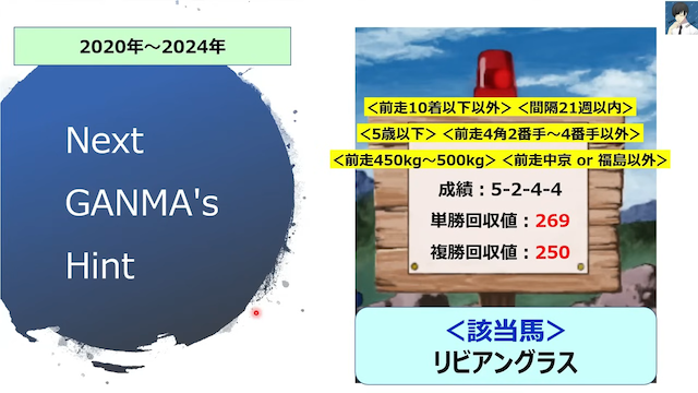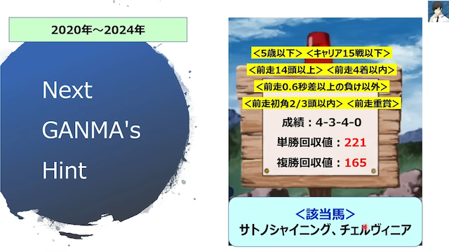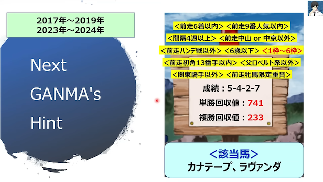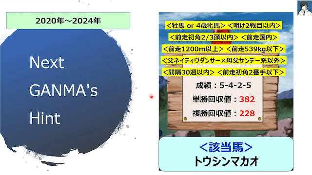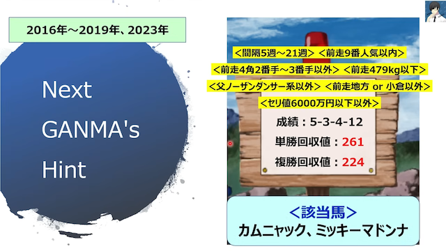 今回は、過去データとマッチする馬を紹介するNextGanma’sHintというコーナーで紹介された馬で勝負し勝てるのか検証してみました。