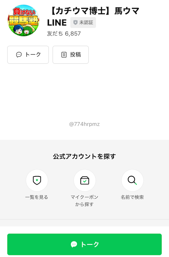 | 【カチウマ博士】地方競馬LINE | ・地方競馬の本命馬、予想を公開 ・地方競馬に関するノウハウ公開 |