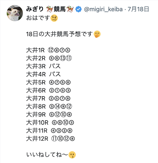 最大の魅力は、X上で地方競馬を中心に毎日10R以上の予想を無料で公開している点です。