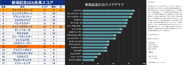 予想とともに掲載されているスコアグラフは、全頭の評価を一覧でまとめてあるので、一目でどの馬が有力なのかが分かります。