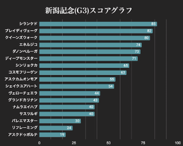 独自スコアで全頭を評価してくれるのがありがたい。特にスコアグラフはパッと見で有力馬がわかるから重宝してる。