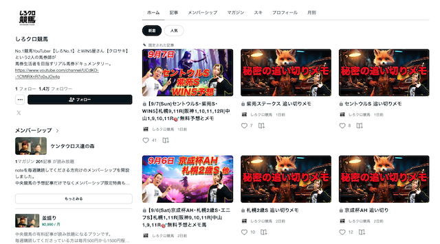 今回は、YouTuberとしても活動するしろくろ競馬さんのnote競馬予想についてご紹介しました。