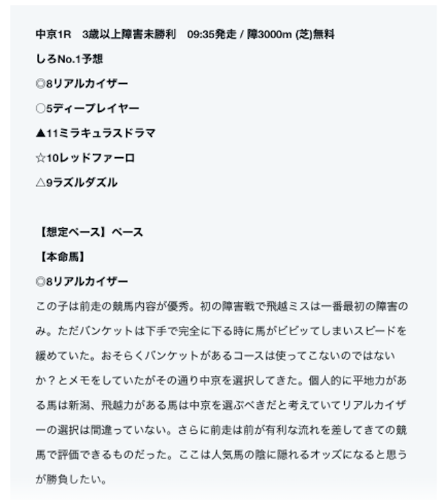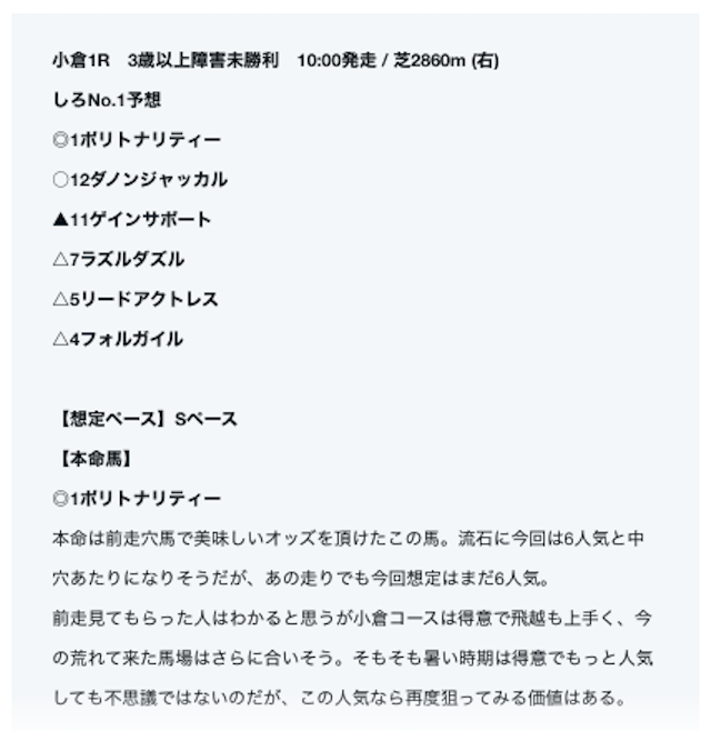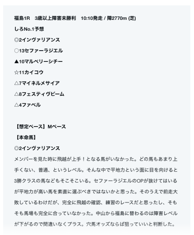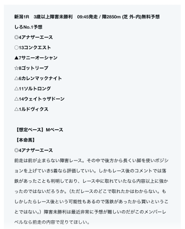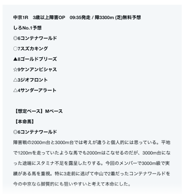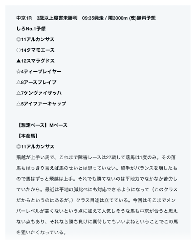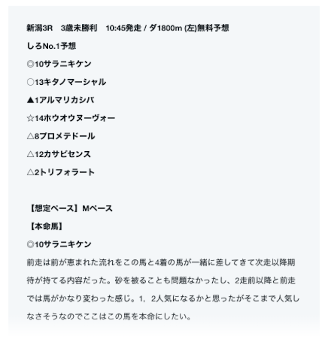 一方で、買い目が明記されていないため、競馬初心者や丸ノリ前提で予想を購入する人にとってはやや不親切に感じるかもしれません。