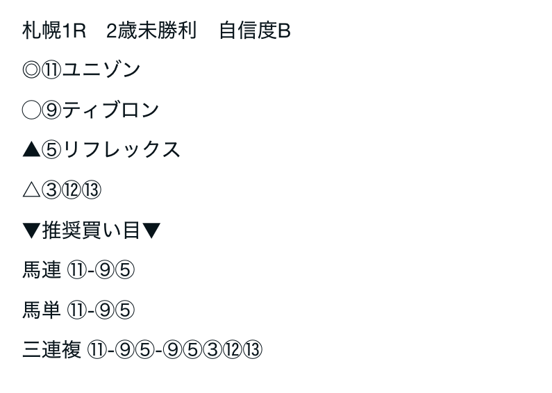 08/24 | 札幌1R | ⑪ | ⑨ | ⑤ | ③⑫⑬ | 不的中 | 不的中 |