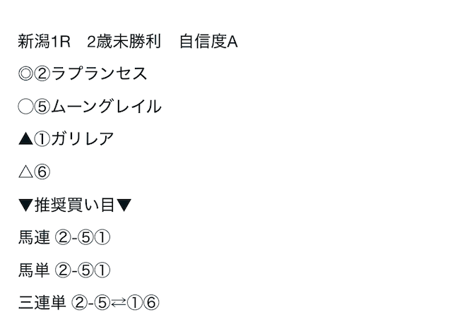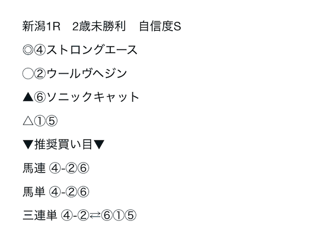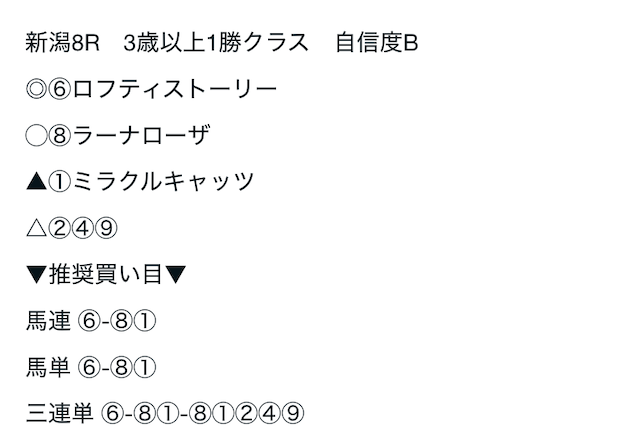 08/24 | 新潟1R | ② | ⑤ | ① | ⑥ | 不的中 | 不的中 |