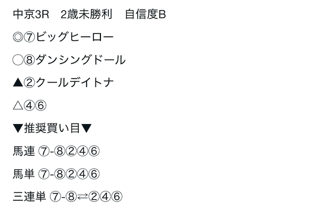 印と具体的な買い目が明記されており、実際に馬券を買いたいユーザーにとっても扱いやすい内容となっています。