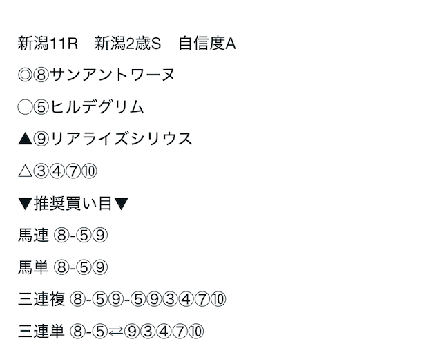 08/24 | 新潟11R | ⑧ | ⑤ | ⑨ | ③④⑦⑩ | 不的中 | 不的中 |