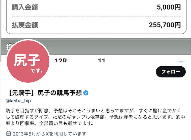 今回は、Xやnoteで活動する競馬予想家「尻子」さんの予想スタイルや実績について検証しました。