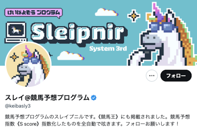 スレイ@さんは、X(旧Twitter)とnoteで活動する競馬予想プログラム開発者です。
