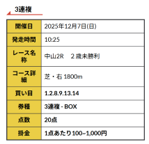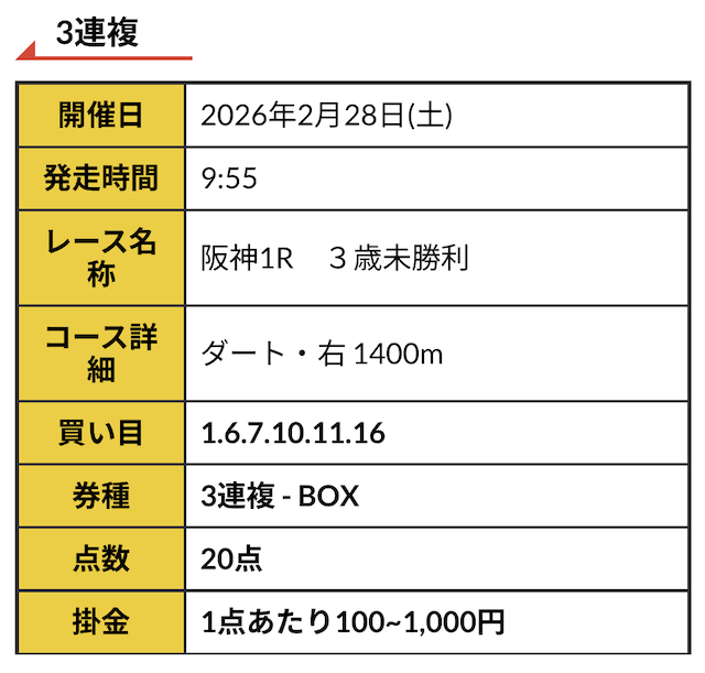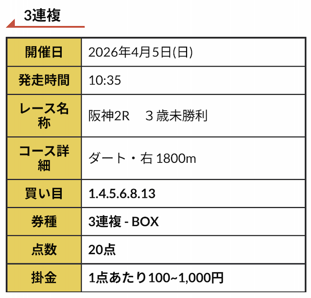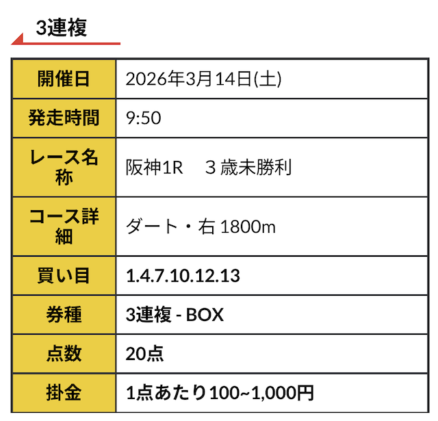 実際に公開された買い目はこちらです。