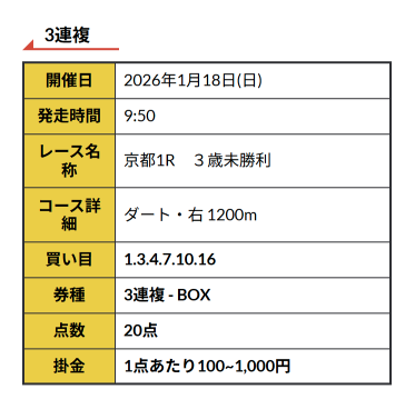 券種はワイド・馬連BOXと3連複BOXがそれぞれ公開されるようです。