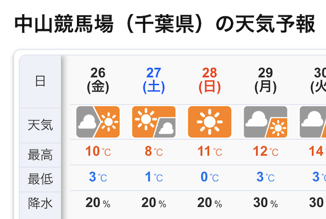 レース当日は、雨の心配はなさそうです。
