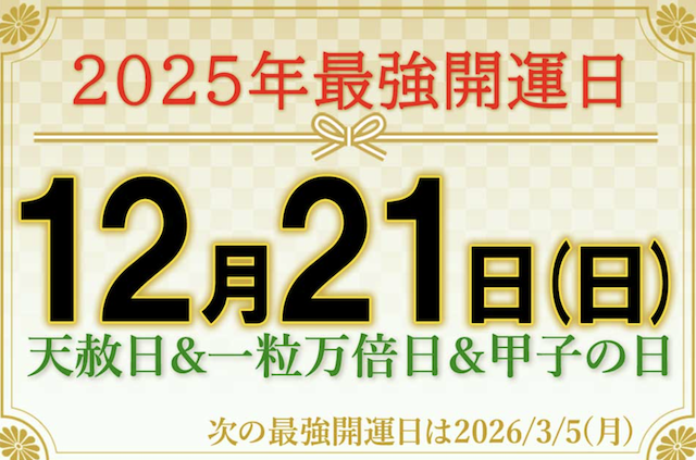 「天赦日」「一粒万倍日」「甲子の日」の3つが重なる超激レアな開運日とのこと。