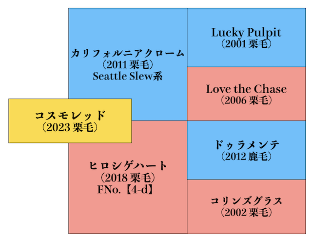 その理由は血統で、代々欧州の血を継いでいる一家であり、本馬はRoberto4×7を持つ欧州血統です。