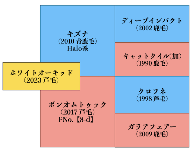 | 2 | 2 | ホワイトオーキッド | B+ | キズナ産駒は道悪強いが晩成タイプも多い。 雨は降ったほうがいい。稍重よりも重がベスト。 |