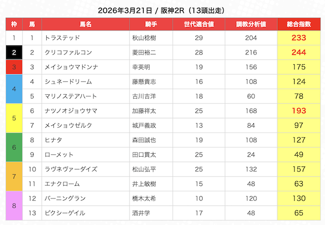 | 2026/03/21 | 阪神2R | ◯ | 19,900円 |