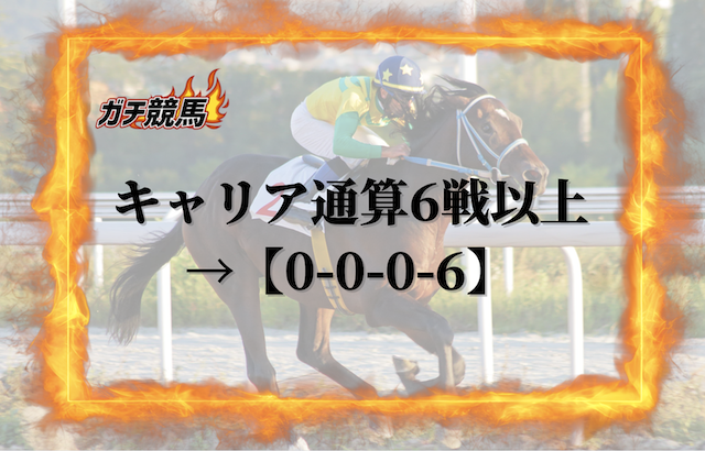 キャリアで通算6戦以上出走した馬は【0-0-0-6】とこれまで馬券に1度も絡んでいません。