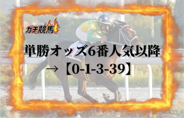 単勝オッズ6番人気以降の馬は、ほとんど馬券に絡むことはありません。