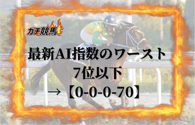えーあいNEOが公開する「血統指数」というAI指数のワースト7位以下の馬は、直近10戦の重賞で【0-0-0-70】と1頭も馬券に絡んでいません。
